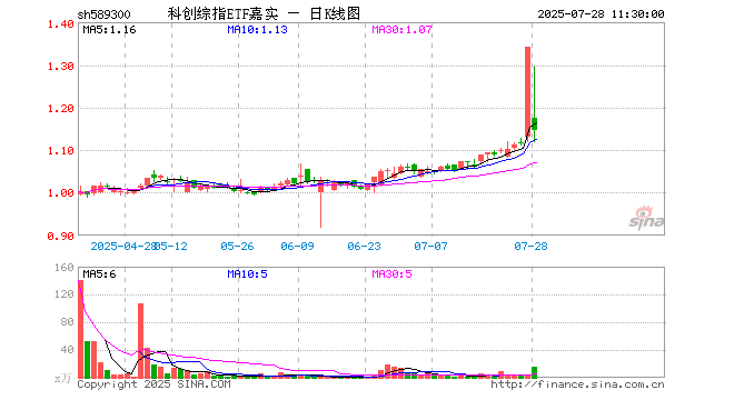 7月28日,截止午间收盘,科创综指ETF嘉实(589300)跌14.61%,报1.146元,成交额1783.72万元。科创综指ETF嘉实(589300)重仓股方面,海光信息截止午盘跌1.54%,寒武纪涨0.19%,中芯国际跌1.52%,金山办公跌0.63%,百利天恒涨3.24%,中微公司跌0.89%,联影医疗涨1.08%,澜起科技跌0.37%,传音控股跌0.34%,华润微涨0.04%。