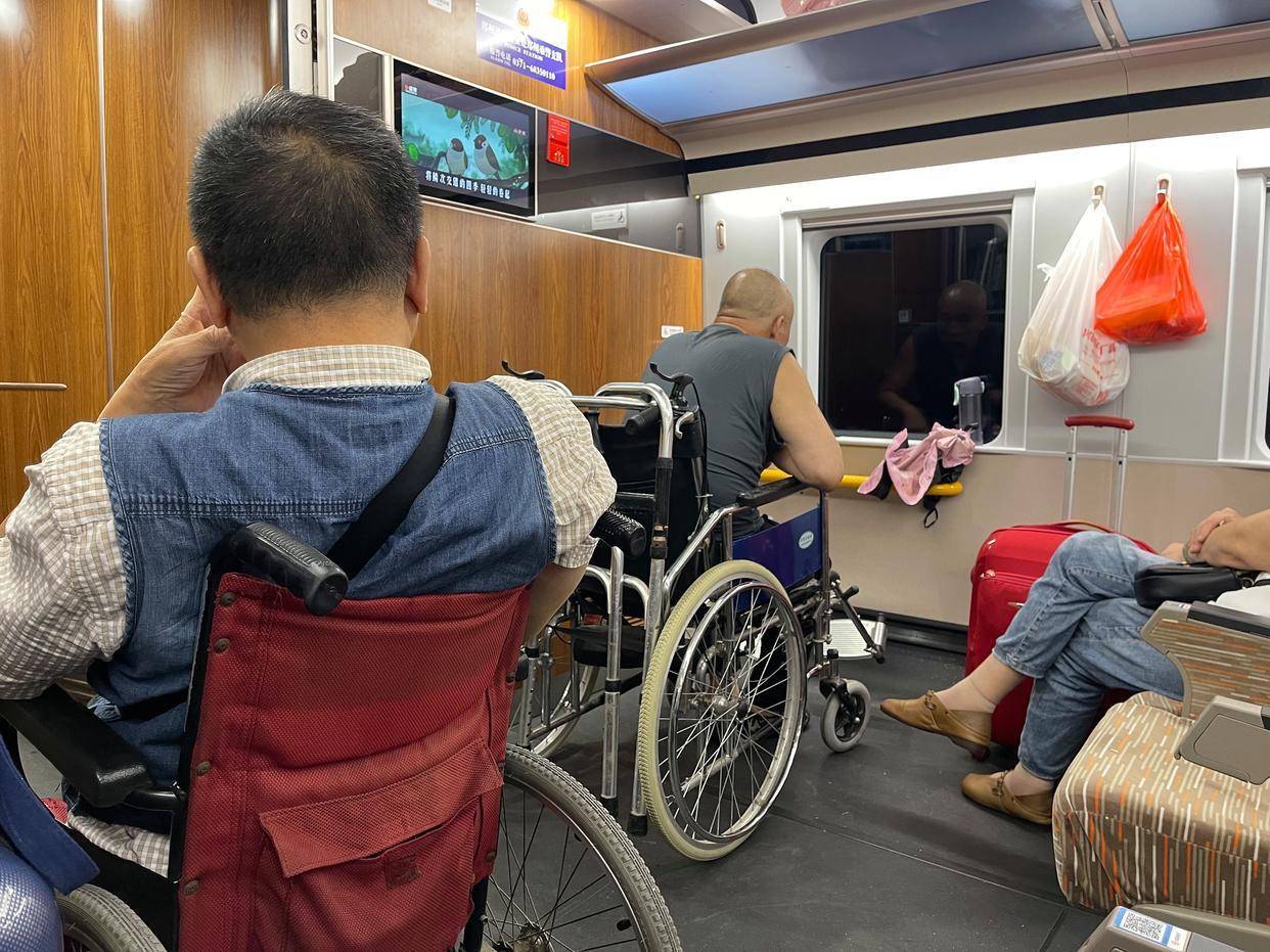 7月21日,徐大爷和老伴去深圳北站坐车,北站的工作人员来接他们,还把徐大爷推到了列车上去。上了车,徐大爷才发现,系统给他分到的10号车厢,没有无障碍设置,座位在中间位置,过道比较窄,轮椅过不去。
